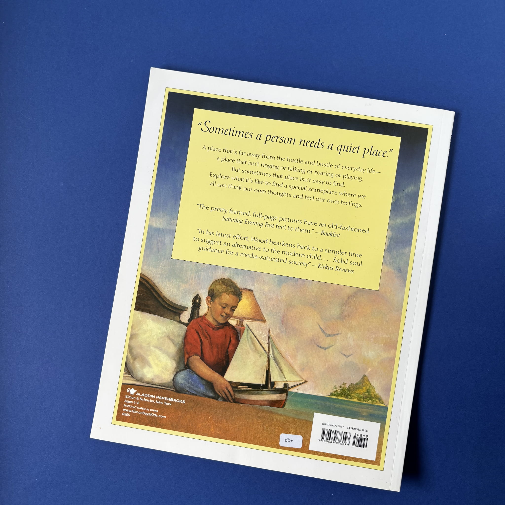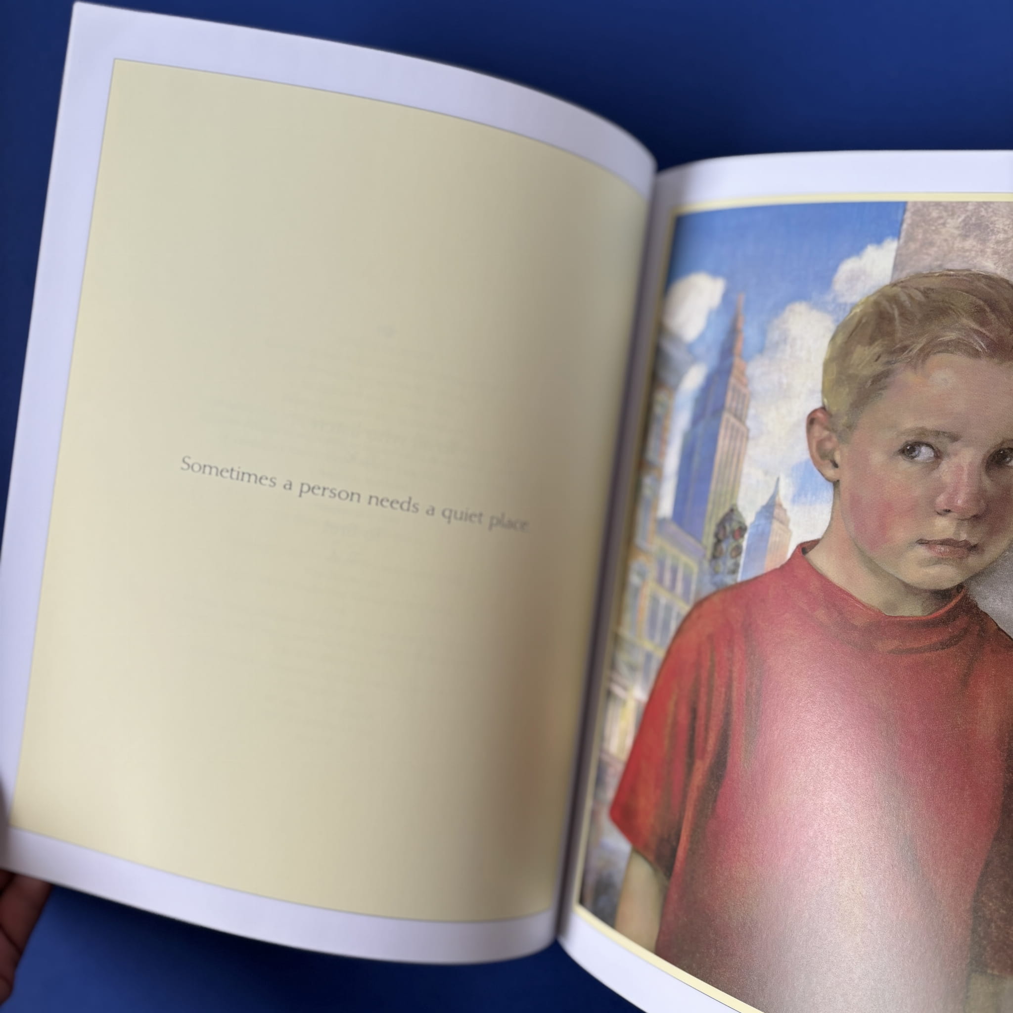 Książka w języku angielskim zachęca młodych czytelników do refleksji nad potrzebą spokojnego miejsca – fizycznego lub wewnętrznego. Przez stonowane, nostalgiczne obrazy i proste, wyważone zdania autor ukazuje, jak czasem trudno znaleźć ciszę – gdy dom, las, plaża czy biblioteka bywają zbyt hałaśliwe lub niedostępne. Istotą staje się odkrycie spokoju “wewnątrz siebie”. Ilustracje Dana Andreasena – realistyczne olejne obrazy z delikatną nutą wyobraźni – budują ciepły, nostalgiczny klimat .