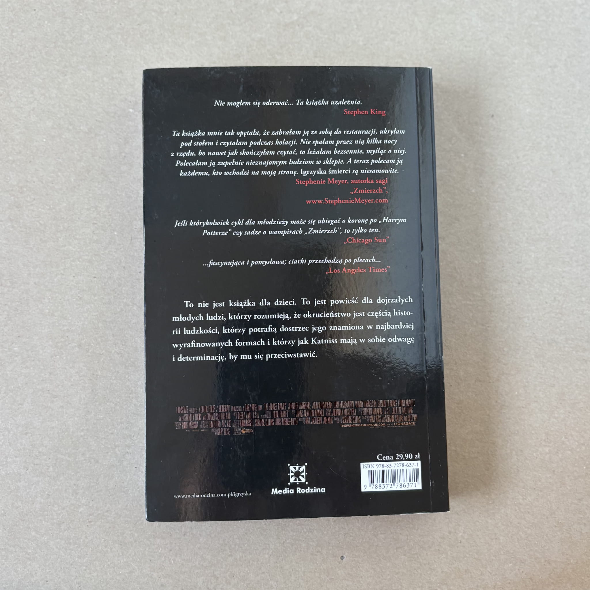 „Igrzyska śmierci” to pierwszy tom bestsellerowej trylogii Suzanne Collins, która wciąga czytelnika w brutalny świat przyszłości. Akcja toczy się w państwie Panem, gdzie co roku organizowane są Głodowe Igrzyska – turniej na śmierć i życie, w którym udział biorą nastolatki z dwunastu dystryktów. Główna bohaterka, szesnastoletnia Katniss Everdeen, zgłasza się na ochotniczkę, by ocalić swoją młodszą siostrę Prim. Wraz z Peetą Mellarkiem, drugim trybutem z jej dystryktu, trafiają na arenę, gdzie muszą stawić czoła nie tylko innym uczestnikom, ale i okrutnym regułom gry. Książka porusza tematy przetrwania, odwagi, poświęcenia i moralności w obliczu ekstremalnych warunków.