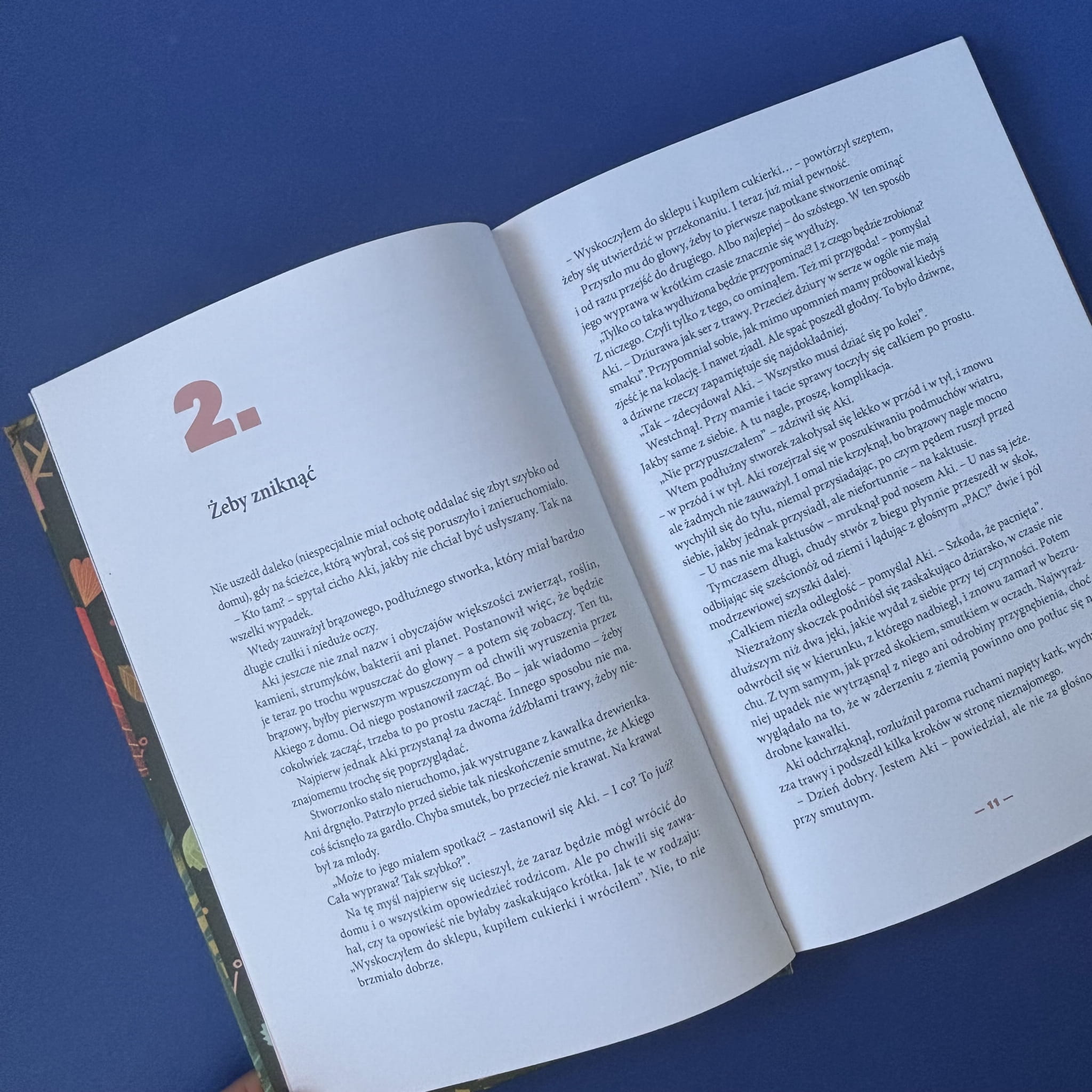 Aki, młody owad, dowiaduje się od ojca, że jest częścią ogromnego lasu. Ta wiadomość staje się impulsem do wyruszenia w podróż pełną przygód i odkryć. Podczas wędrówki Aki spotyka różnorodne postacie i staje przed wieloma wyzwaniami, które pomagają mu lepiej zrozumieć siebie i otaczający świat. Książka porusza tematy tożsamości, dorastania i poszukiwania własnego miejsca, oferując młodym czytelnikom zarówno zabawę, jak i refleksję. Ilustracje Patryka Hardzieja dodają opowieści wyjątkowego klimatu i głębi.