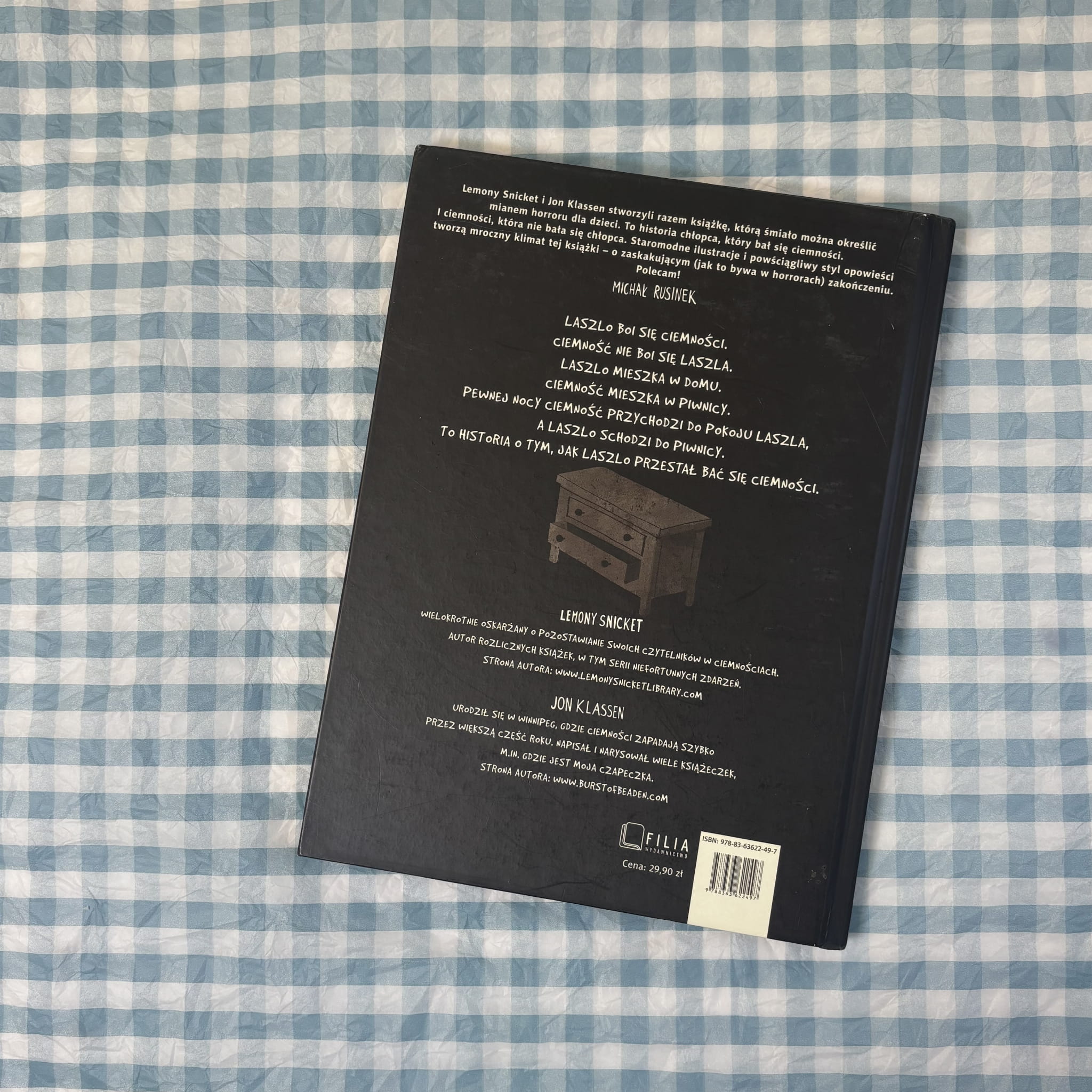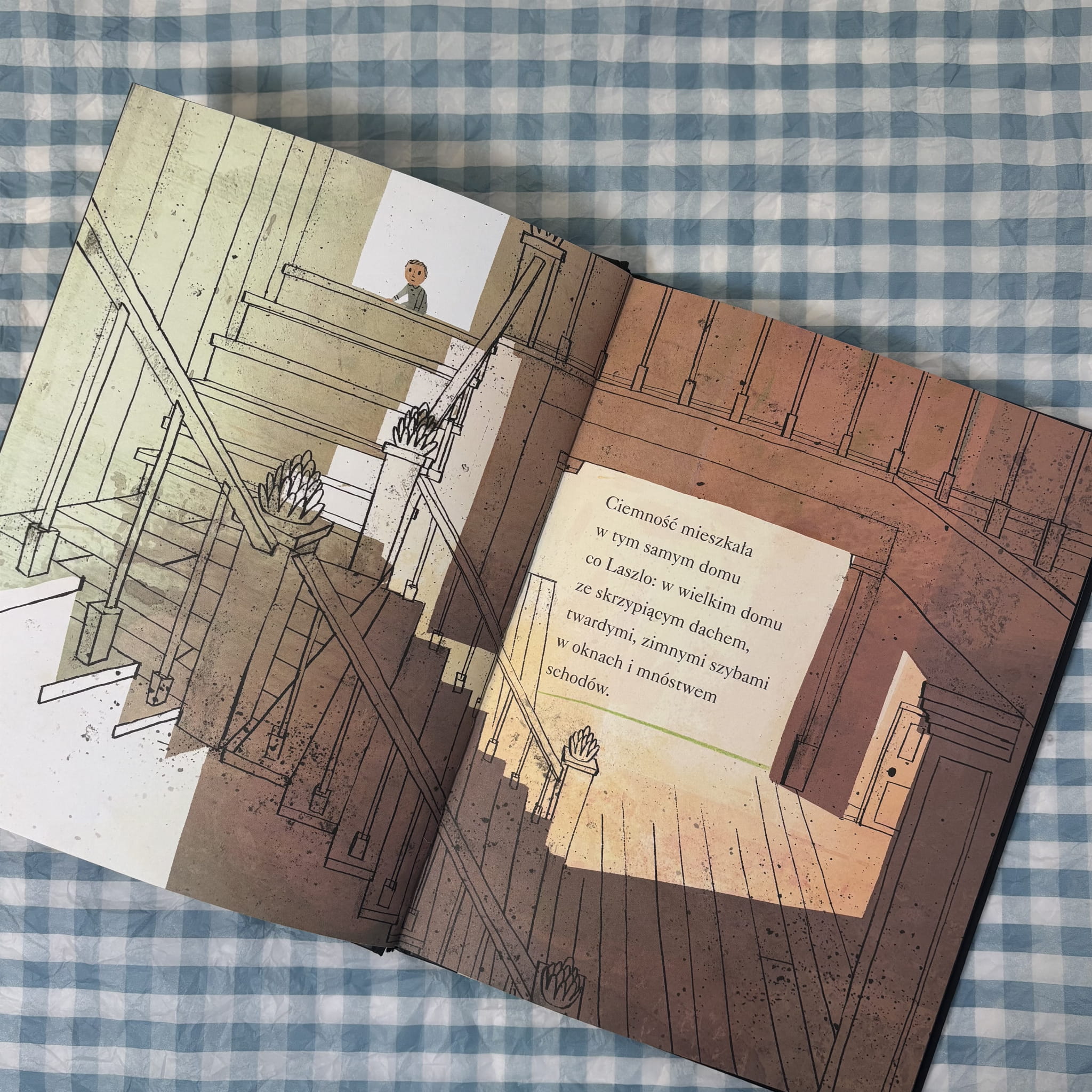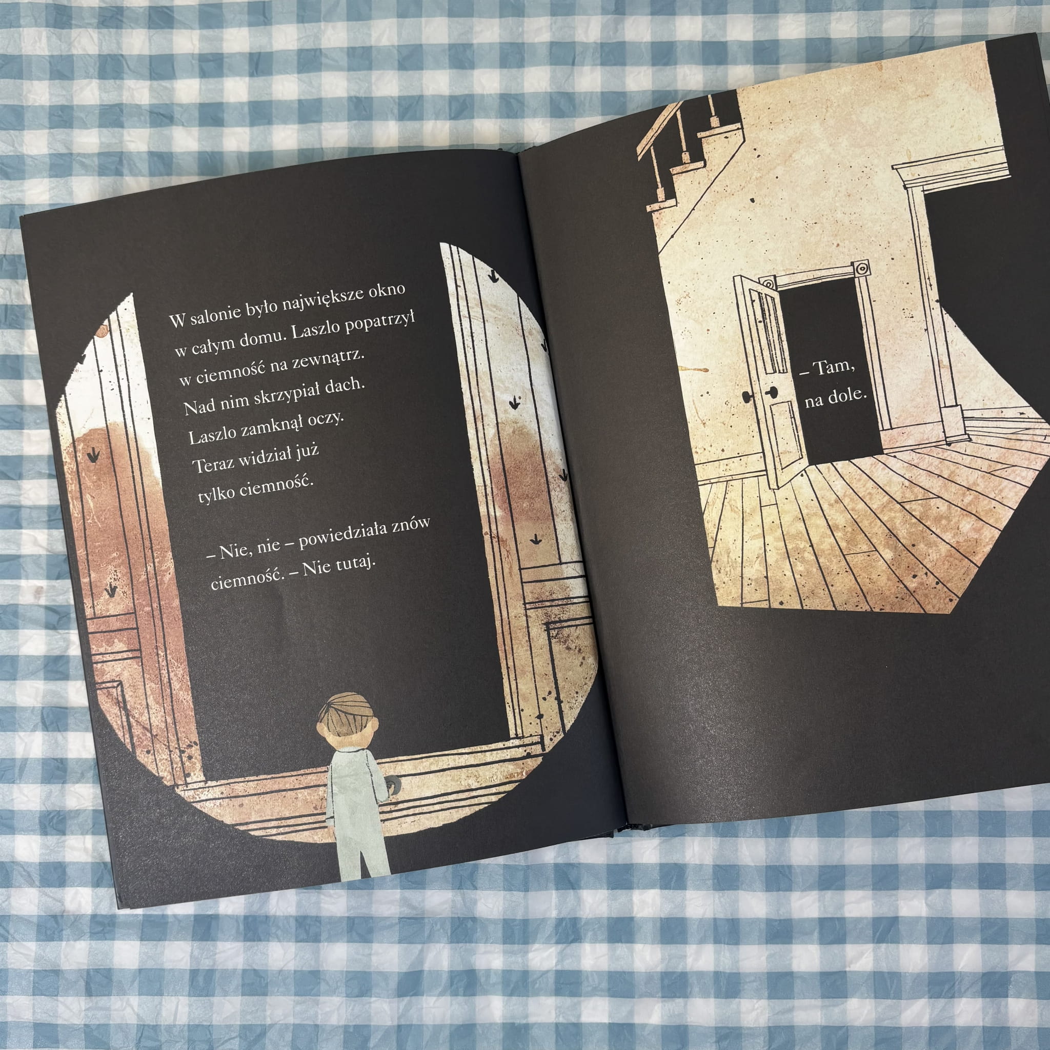 W tej wyjątkowej książce główny bohater — Laszlo — bardzo boi się ciemności. Choć ciemność nie wydaje się mu groźna z początku, to jednak jego własny lęk sprawia, że każdy cień i nocny szmer staje się większy niż życie. Kiedy noc przychodzi do jego pokoju i Laszlo z odwagą schodzi do piwnicy, zaczyna się jego niesamowita podróż przez lęk i jego przezwyciężanie. Piękne ilustracje i prosty, ale głęboki tekst tworzą klimat, który pomaga dzieciom rozmawiać o swoich emocjach i pokazuje, że strach można oswoić.