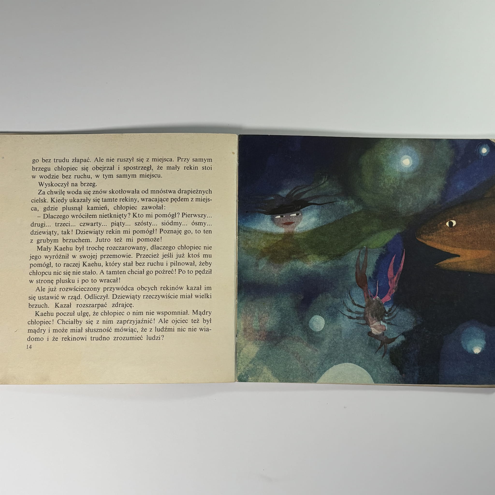Bohaterem jest młody rekin, który wyrusza na spotkanie z podwodnym światem, poznając inne stworzenia i ucząc się zasad rządzących morskim życiem. Opowieść ma lekki, baśniowy charakter, a ilustracje podkreślają atmosferę przygody i egzotyki, zachęcając do odkrywania przyrody i morskich tajemnic.