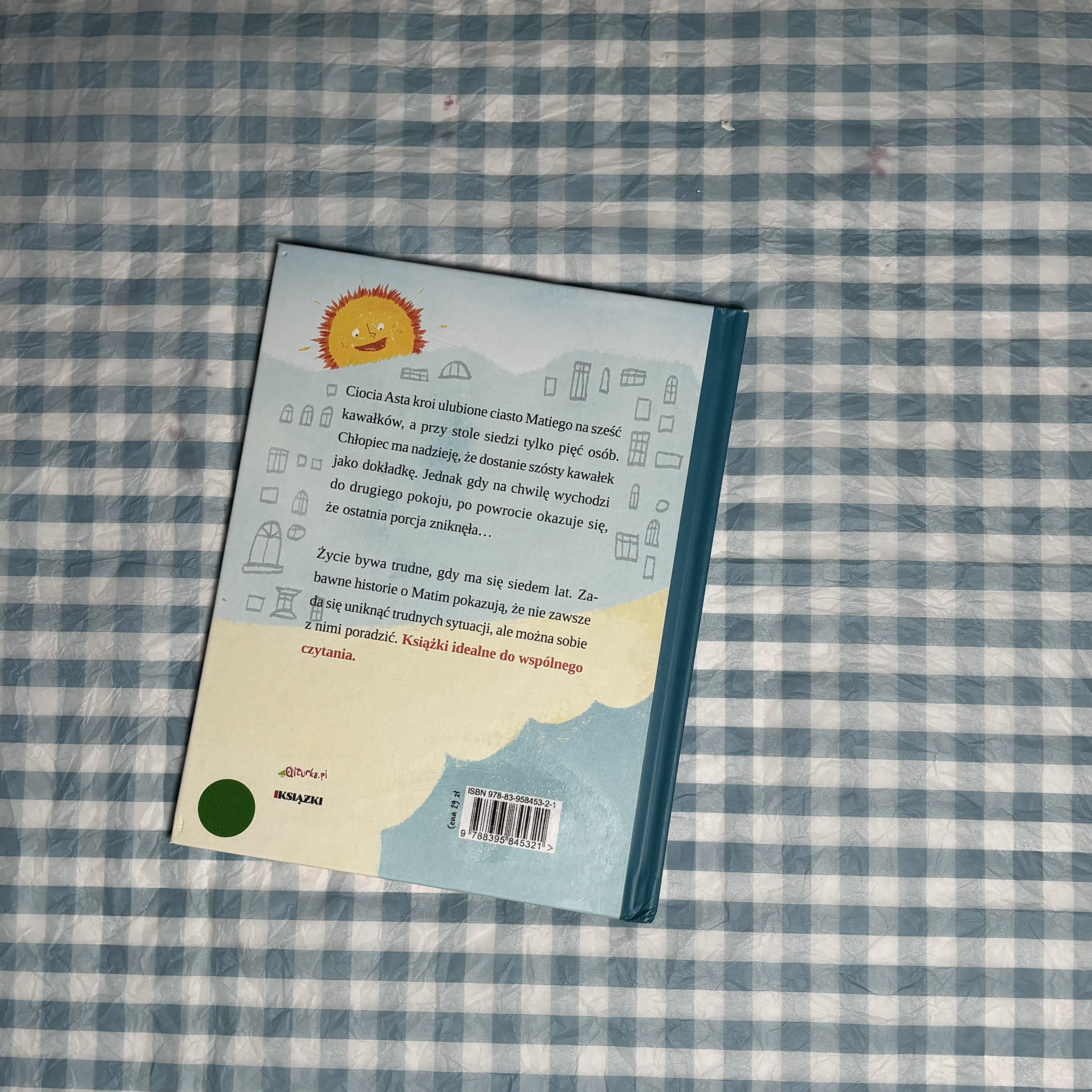 W tej pełnej emocji i subtelnego humoru opowieści Mati, siedmioletni chłopiec, zmaga się z codziennymi sytuacjami, które dla dorosłych mogą wydawać się błahe — ale z perspektywy dziecka bywają sporym wyzwaniem. Gdy ciocia Asta kroi jego ulubione ciasto na sześć kawałków, a przy stole siedzi pięć osób, Mati liczy w myślach kawałki i liczy na dokładkę. Kiedy po chwili niepewności wraca i ostatni kawałek ciasta zniknął, zaczynają się pytania: kto mógł go zjeść? Czy zerwanie śliwki z sąsiedniego drzewa to kradzież? Co zrobić, gdy tata zgubi się w sklepie? I jak znaleźć odwagę, by spróbować zrobić salto?