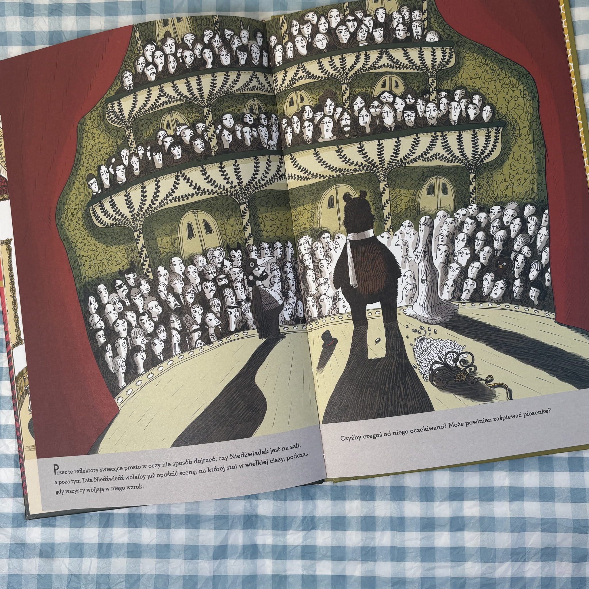 „Misiowa piosenka” to wyjątkowa książka-zabawa, która działa trochę jak mini-teatrzyk — każda strona zawiera ruchome elementy, które dzieci mogą przesuwać i odkrywać nowe kombinacje obrazów, co tworzy kolejne „wersje” misiowej pieśni. Każda scena przedstawia sympatyczne misie zajęte śpiewaniem, tańcami i zabawami, a prosta konstrukcja zachęca do wspólnej interakcji, opowiadania historii i rytmicznego „śpiewania” w głos. Książka rozwija spostrzegawczość, koordynację ruchową oraz wyobraźnię, a dzięki mechanicznej formie staje się aktywną lekturą dla najmłodszych.