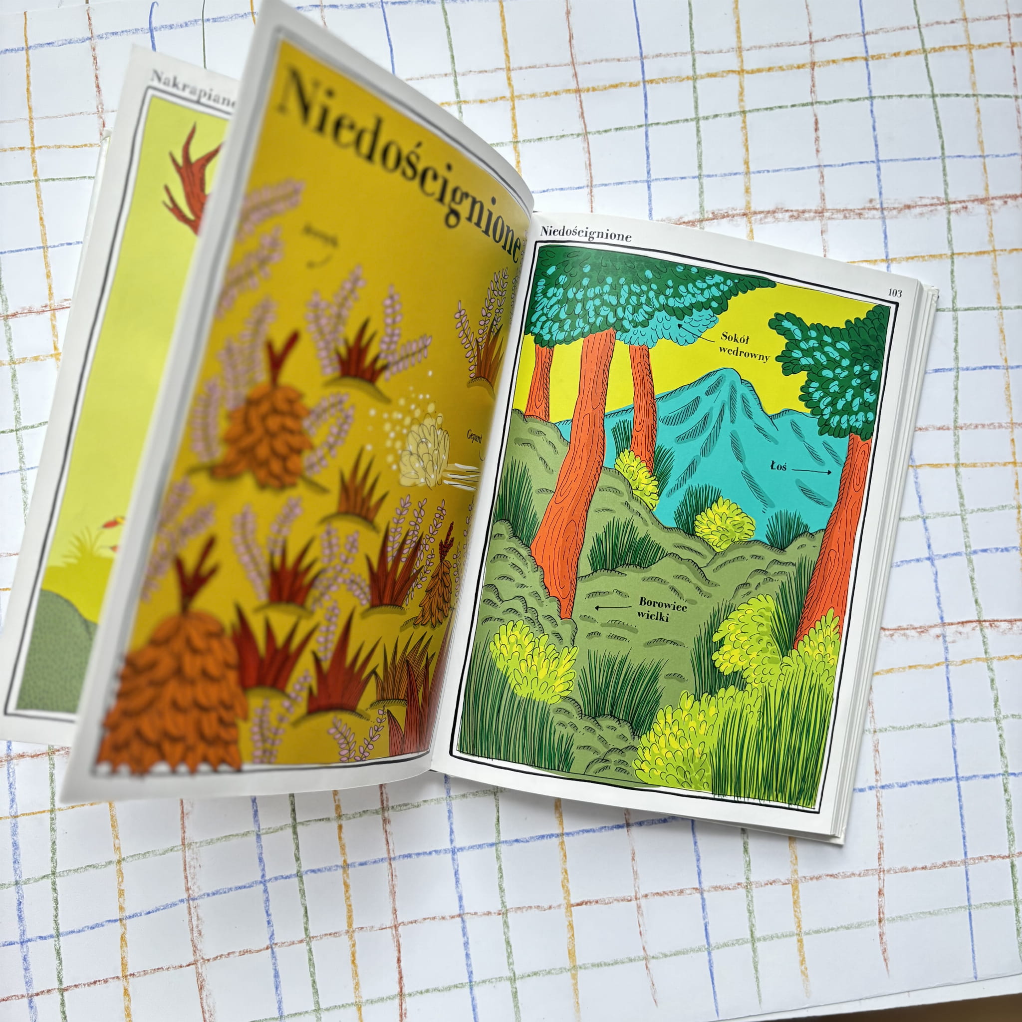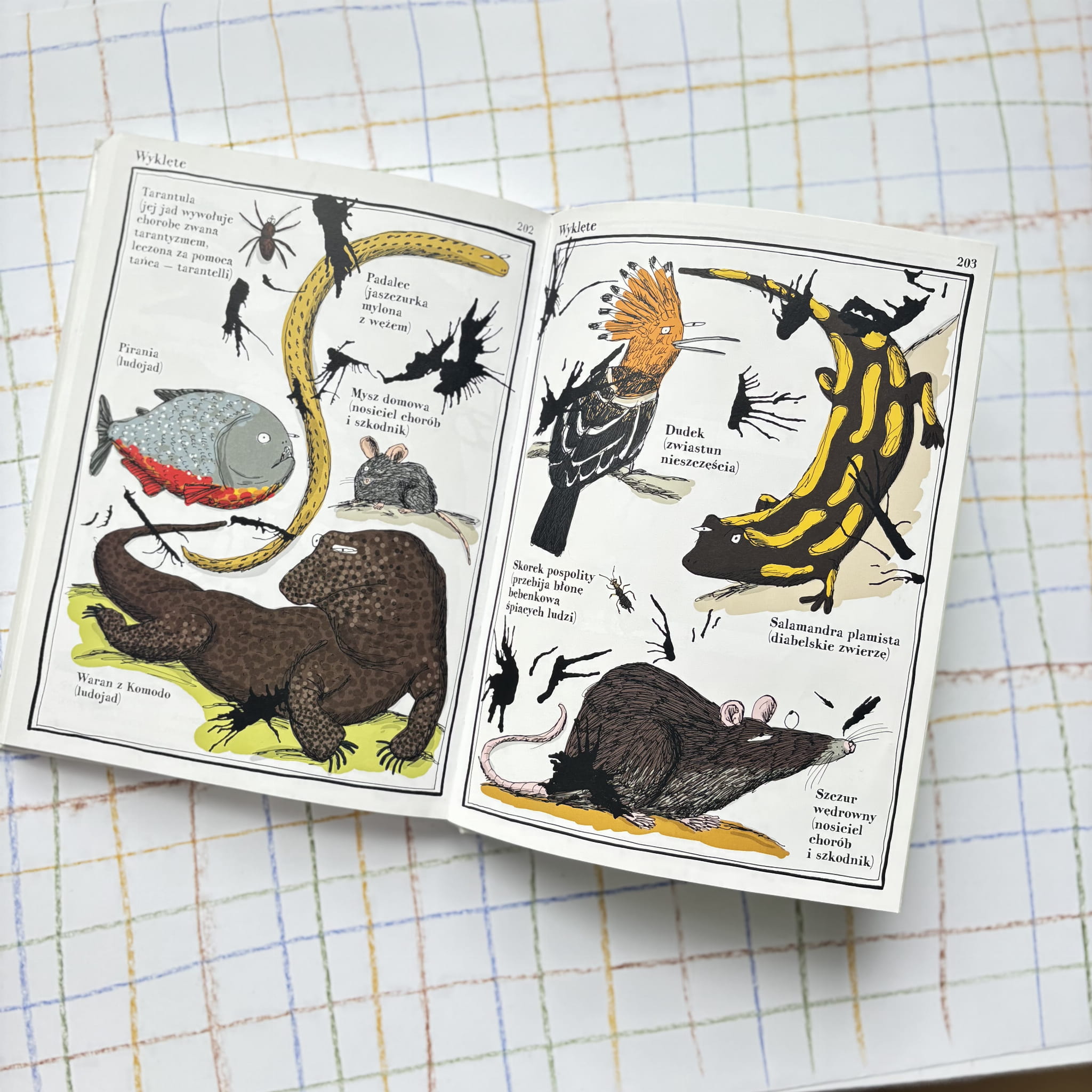 Książka prezentuje zwierzęta w nietypowy sposób – zamiast klasycznego podziału biologicznego pojawiają się kategorie takie jak „narwańcy”, „uwodziciele” czy „samotnicy”. Każda rozkładówka to zestawienie różnych gatunków połączonych wspólną cechą, co zachęca do odkrywania świata przyrody z innej perspektywy. Charakterystyczne, pełne detali ilustracje i krótkie podpisy sprawiają, że książka jest jednocześnie źródłem wiedzy i wizualną przyjemnością.