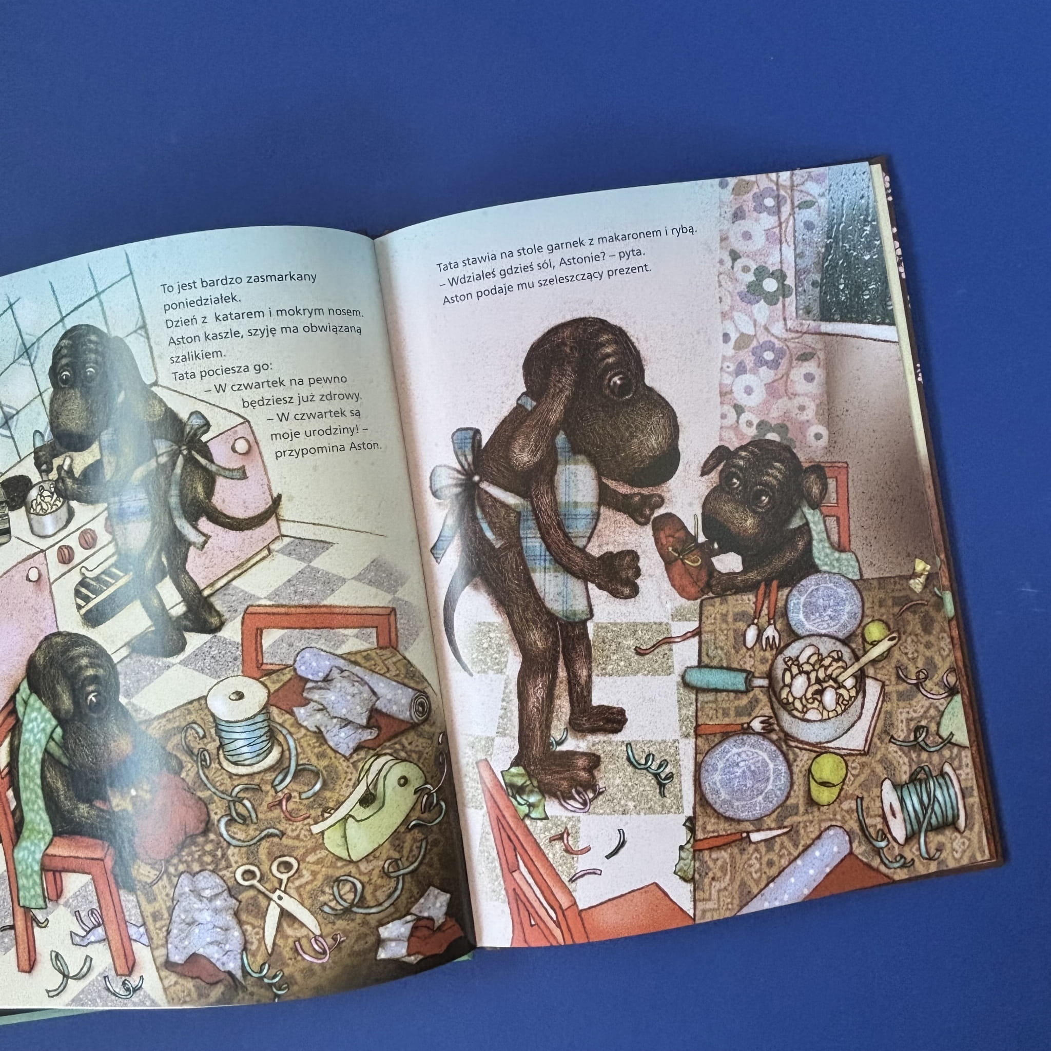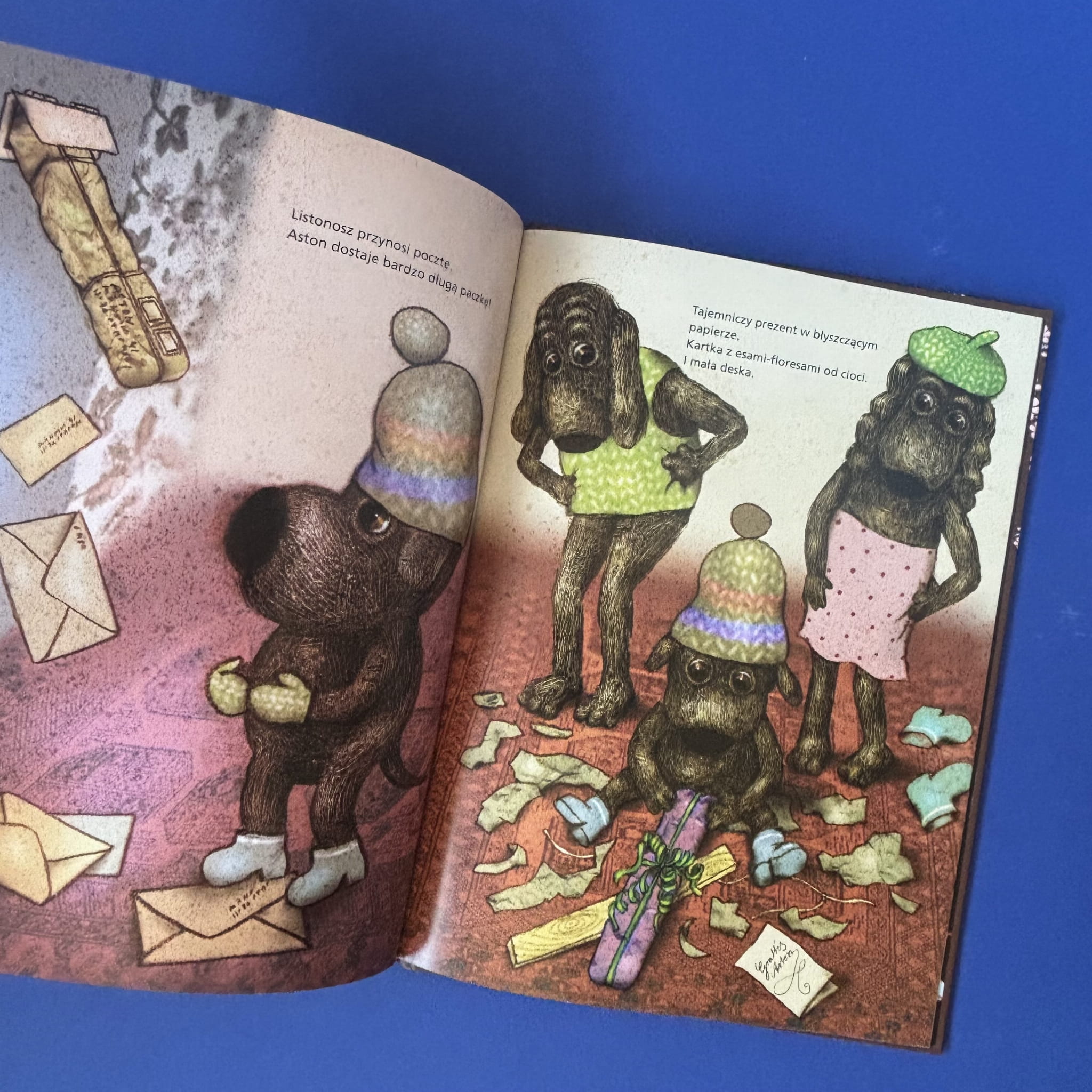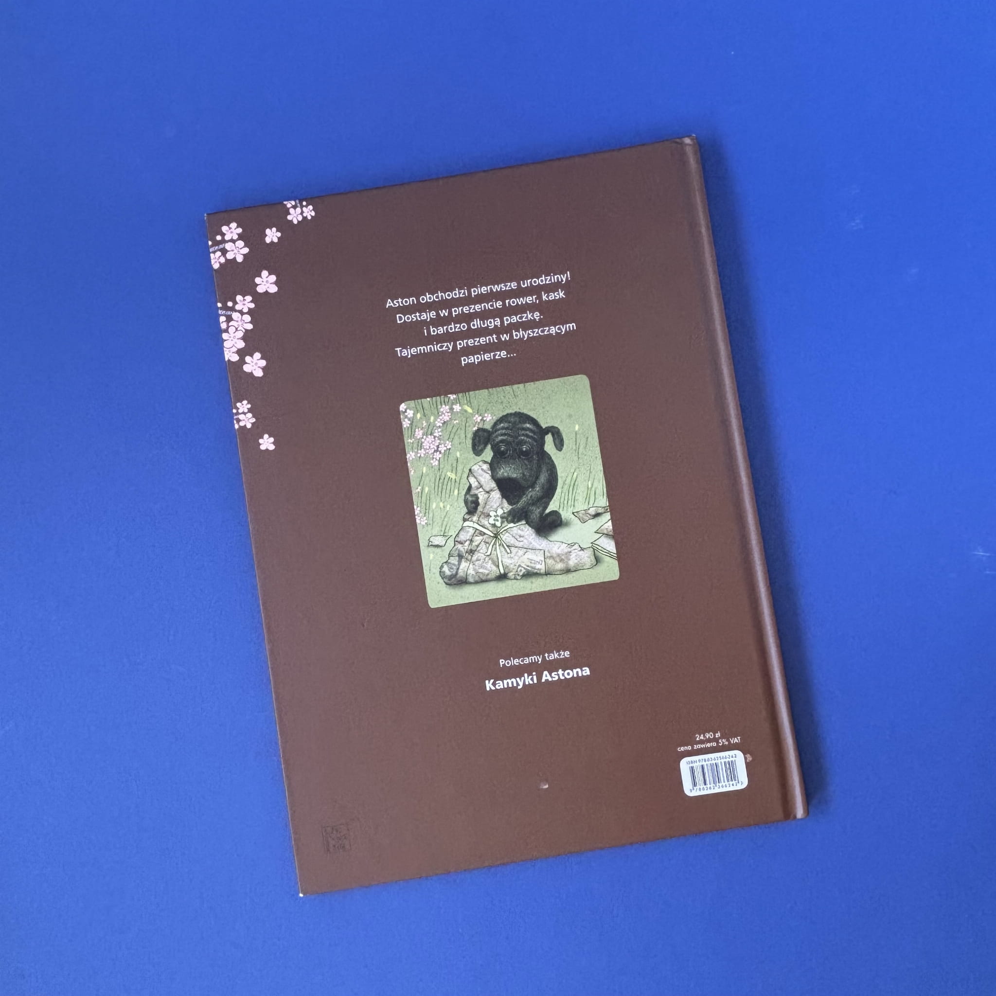 Aston obchodzi swoje pierwsze urodziny! Wśród prezentów, które otrzymuje od swoich przyjaciół, znajduje się rower, kask oraz tajemnicza, długa paczka owinięta w błyszczący papier. Każdy z tych podarunków staje się częścią kolejnych przygód małego pieska, który odkrywa, że najpiękniejsze prezenty to te, które dają radość i możliwość wspólnej zabawy. Ilustracje Lotty Geffenblad, pełne ciepła i detali, doskonale oddają atmosferę przyjaźni i radości z dzielenia się.