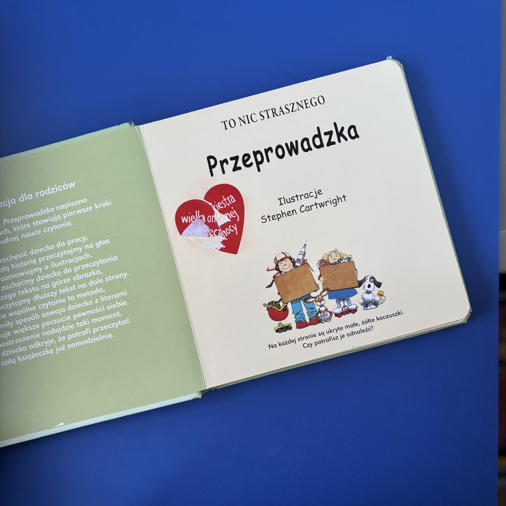 To niewielka (15‑stronicowa), ale niezwykle czuła książeczka dla dzieci, która łagodnie wprowadza temat przeprowadzki – nowego domu, otoczenia, a także związanych z tym emocji i obowiązków. Dzięki prostym, pełnym ciepła ilustracjom Stephena Cartwrighta i przyjaznemu tekstowi Marty Łukasiak, pozycja pomaga małym czytelnikom oswoić się ze zmianą środowiska poprzez wspólne czytanie, rozmowę i obserwację codziennych sytuacji .