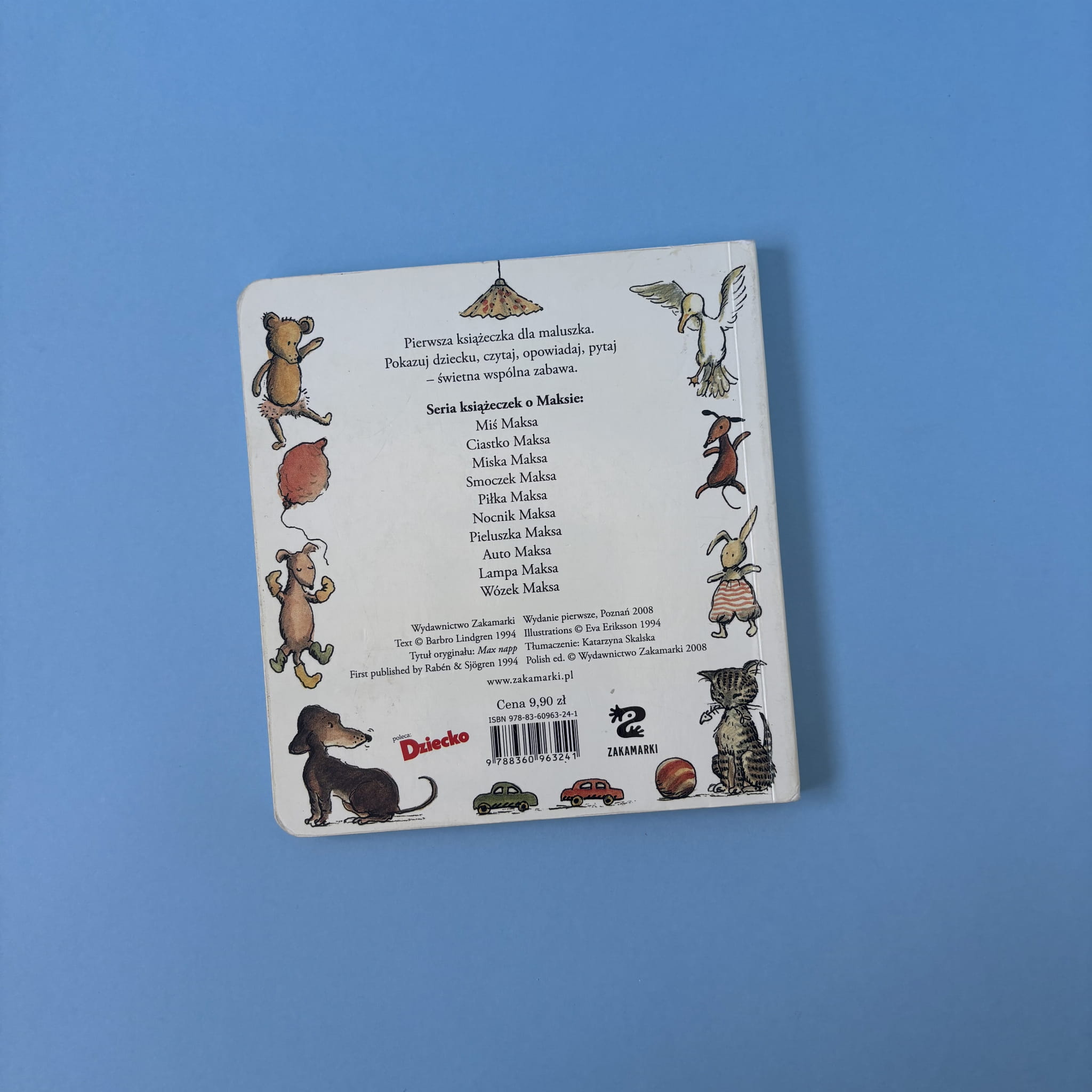 „Smoczek Maksa” to część serii książeczek o małym chłopcu, który przeżywa codzienne przygody i wyzwania. W tej historii Maks nie chce podzielić się swoim ukochanym smoczkiem z innymi zwierzątkami, co prowadzi do zabawnych i pouczających sytuacji. Książeczka w prosty sposób porusza temat dzielenia się i emocji związanych z posiadaniem ulubionych przedmiotów. Ilustracje Evy Eriksson doskonale oddają dziecięce uczucia i nastroje, a tekst Barbro Lindgren jest bliski językowi dziecka, co sprawia, że lektura jest angażująca i przyjemna.