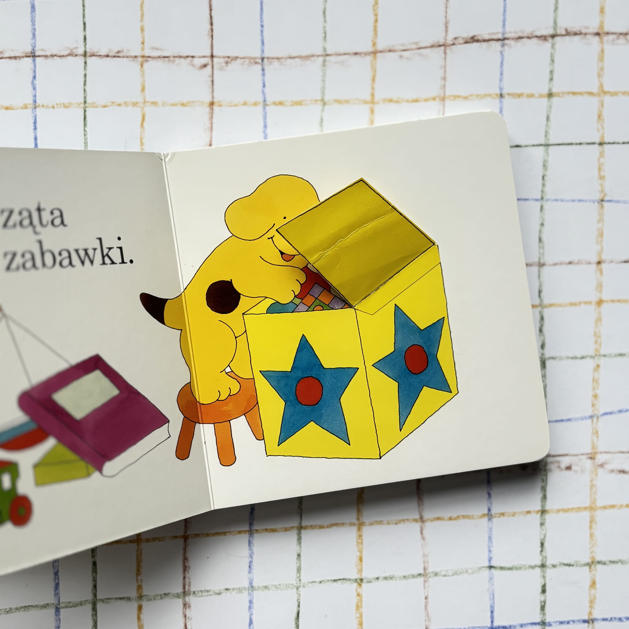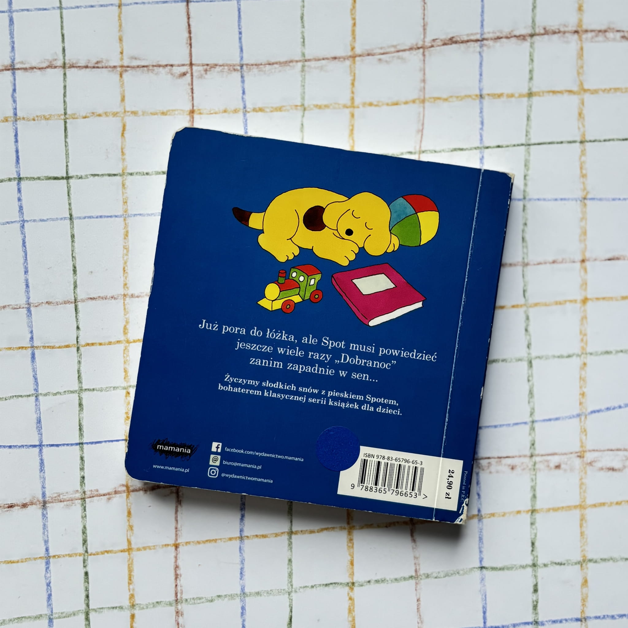 Spot przygotowuje się do snu – żegna się z bliskimi, wykonuje wieczorne czynności i odkrywa, kto jeszcze mówi dobranoc. Prosta, rytmiczna opowieść z elementami interaktywnymi (okienka) wspiera budowanie wieczornych rytuałów i daje najmłodszym poczucie bezpieczeństwa.